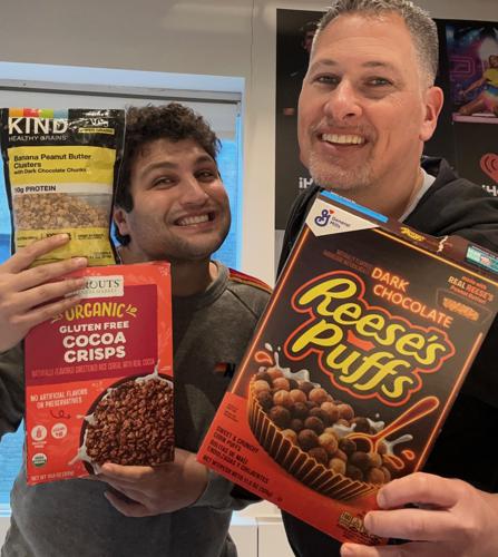 Every cereal today has been previously opened and eaten by someone else at this friggin' place! We'll try the torn open box of the new Dark Chocolate Reese's Puffs, most likely provided by our friends at General Mills. Then we get to the unproperly opened box of Cocoa Crisps that Diamond just had to try before us. Then, our pal Matt sent us some Kind Banana Peanut Butter Chocolate granola that Nate desperately needed for his yogurt before we got to check it out.