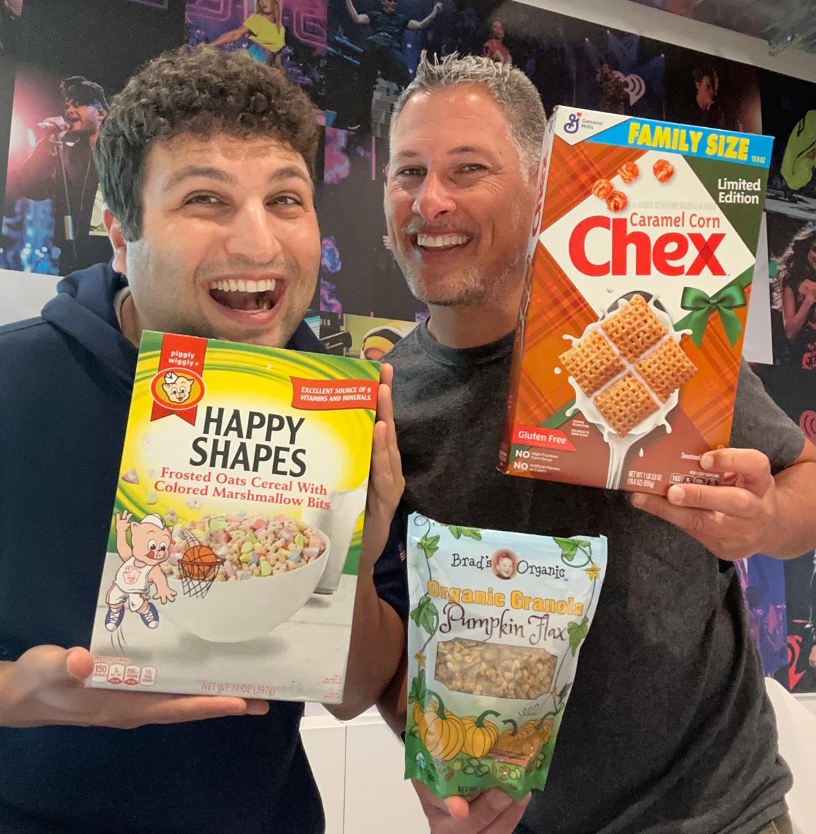 The boys are back together! Scotty starts off complaining about something as usual, then fills the cups with new Limited Edition Caramel Corn Chex, just in time for Fall Festivals! Staying with the fall theme, Brad's Organic Pumpkin Flax Granola is next, followed by some blah fake Lucky Charms from that adorable Porky Pig rip-off, Piggly Wiggly.